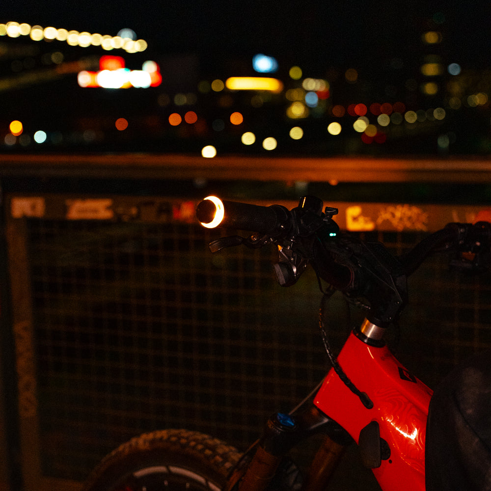 BLNKR – der innovative Fahrradblinker mit integrierter Elektronik, Taster, Blinkgeber und Griffgummi in einem Bauelement. 100 % wasserdicht, stoßfest und einfach an E-Bikes zu installieren – ganz ohne Werkstatt. Helles Blinklicht mit patentierter Optik, super hell nach vorn und hinten, allseitig sichtbar. Mit Positionslicht, Warnblinker und Komfortabschaltung für Spurwechsel. Bewährte Technik aus dem Motorradbereich, für dein Plus an Sicherheit im Straßenverkehr – ECE geprüft - Made in Germany. www.BLNKR.de
